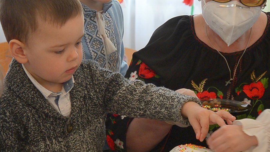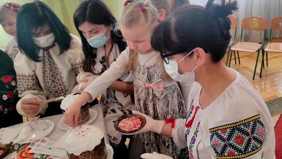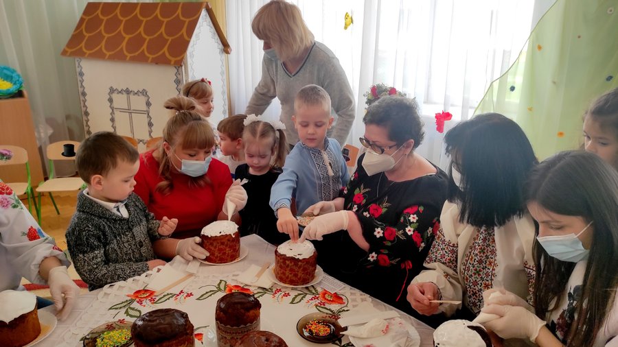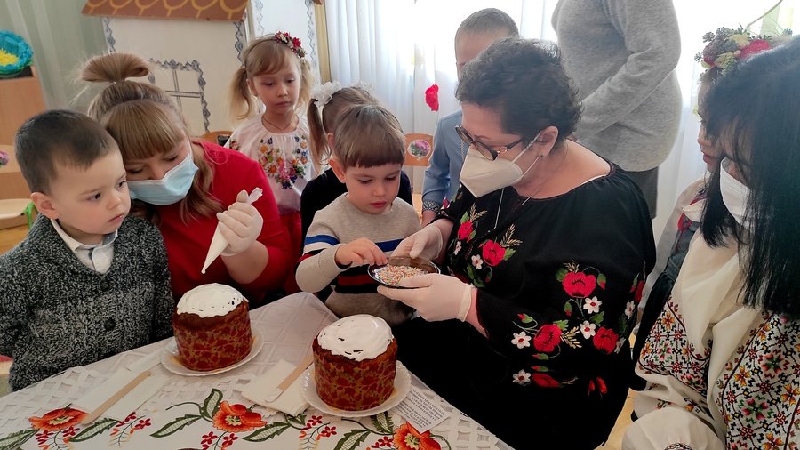 «Ми купили посипку, у якій є елементи і довгенькі, і кругленькі, вони різного кольору, щоб паска була красивою», – розповідає вихователька-методистка Галина Турецька.