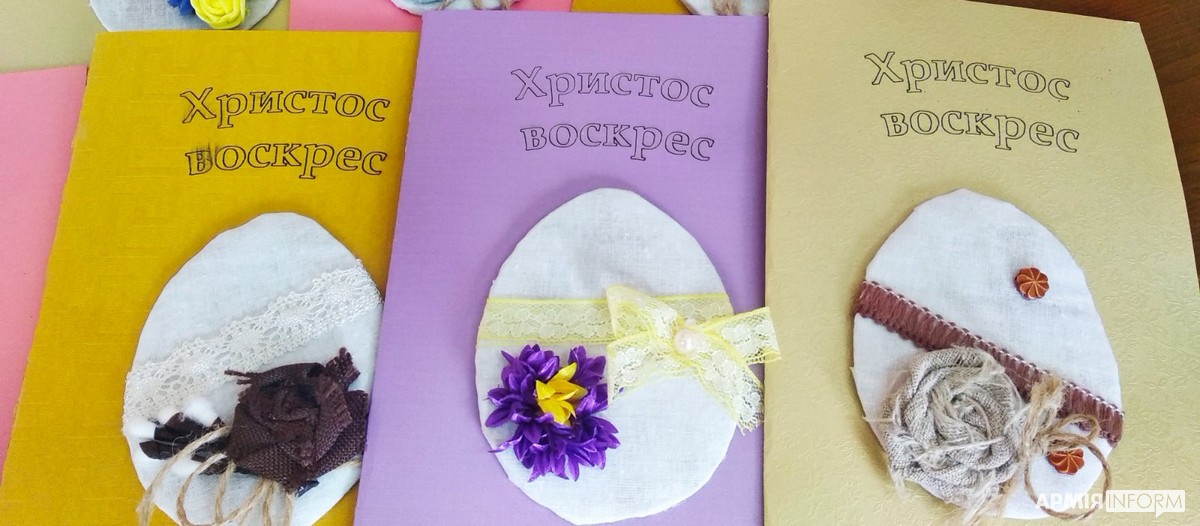 Ось і вихованці закладу позашкільної освіти «Будинок дитячої творчості» міста атомників Нетішина долучились до акції та привітали захисників України — військовослужбовців Збройних Сил, що виконують бойові завдання на Сході. Діти власноруч виготовили привітальні великодні листівки й написали на них слова найщирішої вдячності.