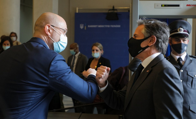 Прем’єр-міністр України Денис Шмигаль і Державний секретар Сполучених Штатів Америки Ентоні Блінкен під час зустрічі обговорили широке коло питань двосторонніх відносин, враховуючи безпекову ситуацію, імплементацію реформ та співпрацю з Міжнародним валютним фондом.