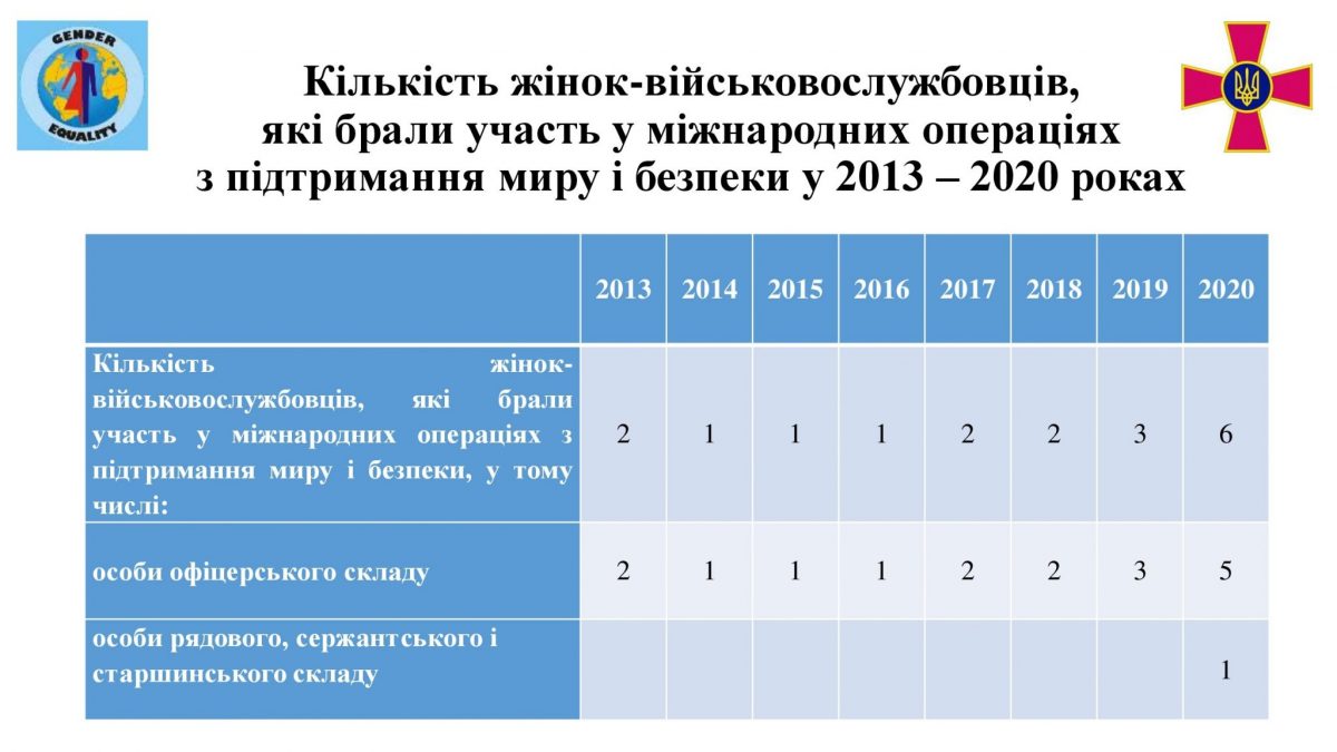 — До речі, якщо порівнювати з АТО/ООС, кількість жінок у міжнародних місіях не така вражаюча.
