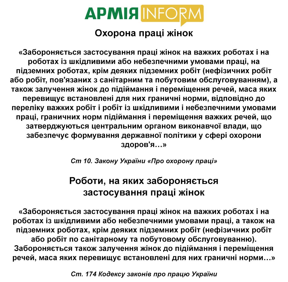 — Але сьогодні нам заважають щодо цього певні обмеження в загальнодержавних документах, а саме — норми, визначені в статті 10 Закону України «Про охорону праці», стаття 174 Кодексу законів про працю України та інші.