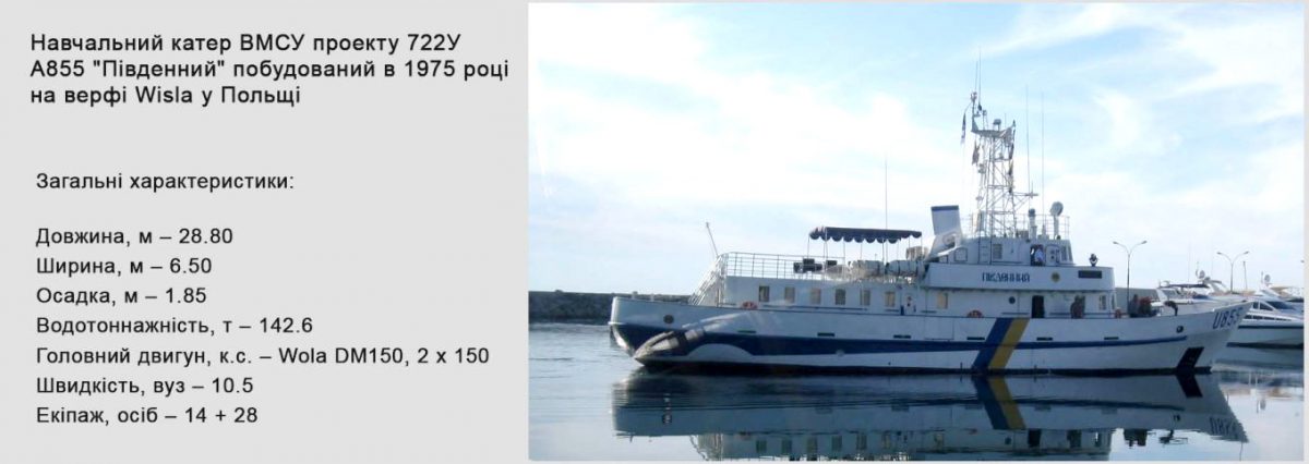 Катер проєкту 722У A855 «Південний», що входить до складу Військово-Морських Сил України, пройде доковий ремонт.