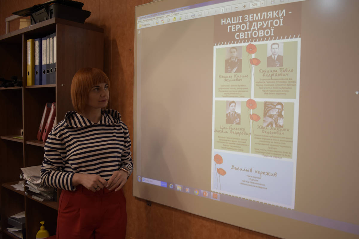 — Так, левову частку роботи зробила бібліотекар Марія Іванівна, — розповідає Ганна Бондар. — Проте дуже багато для проєкту зробила його безпосередній керівник,викладач Катерина Кепенко, а власне ідея належить нашому директорові Людмилі Постоленко. Загалом без роботи не залишився ніхто: учні писали описи, учителі української мови їх перевіряли — це наша спільна праця!