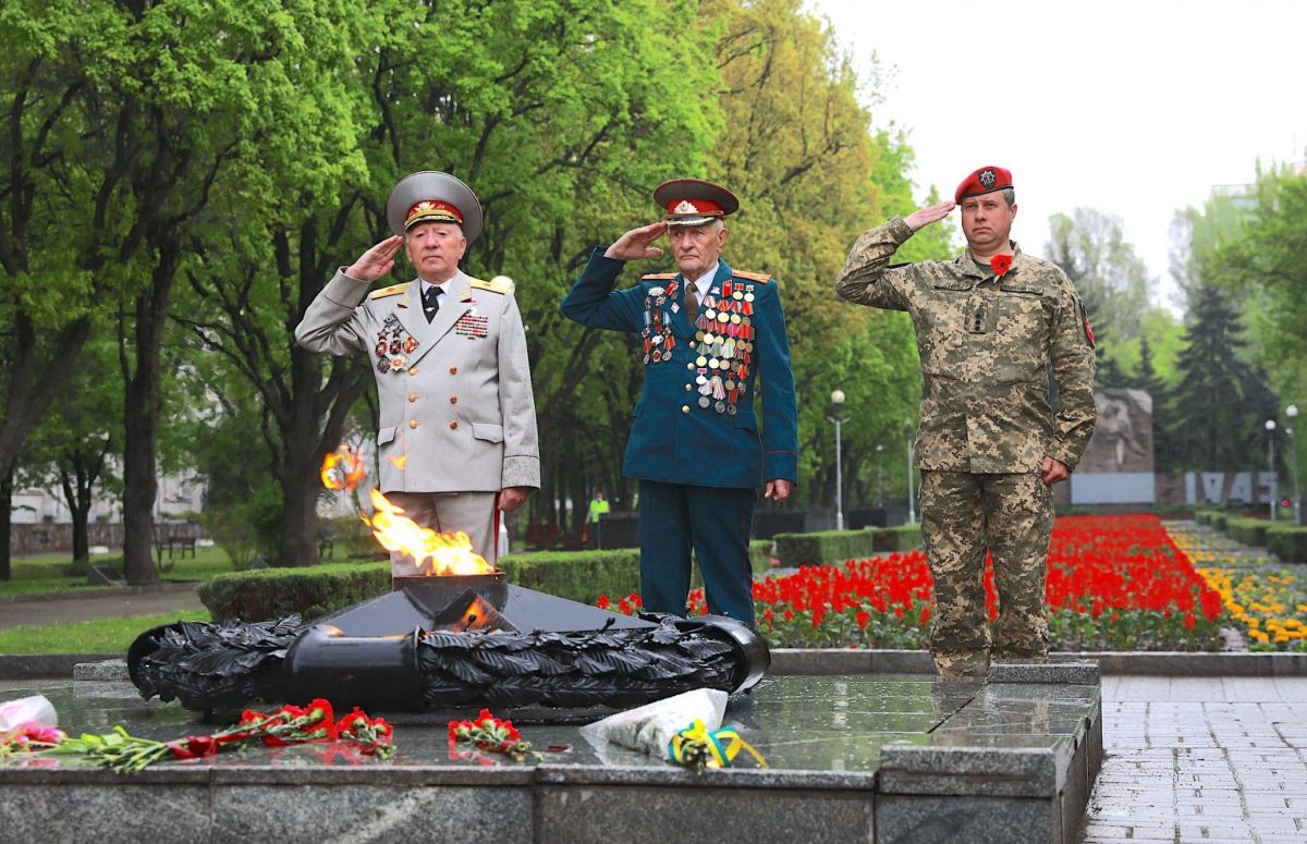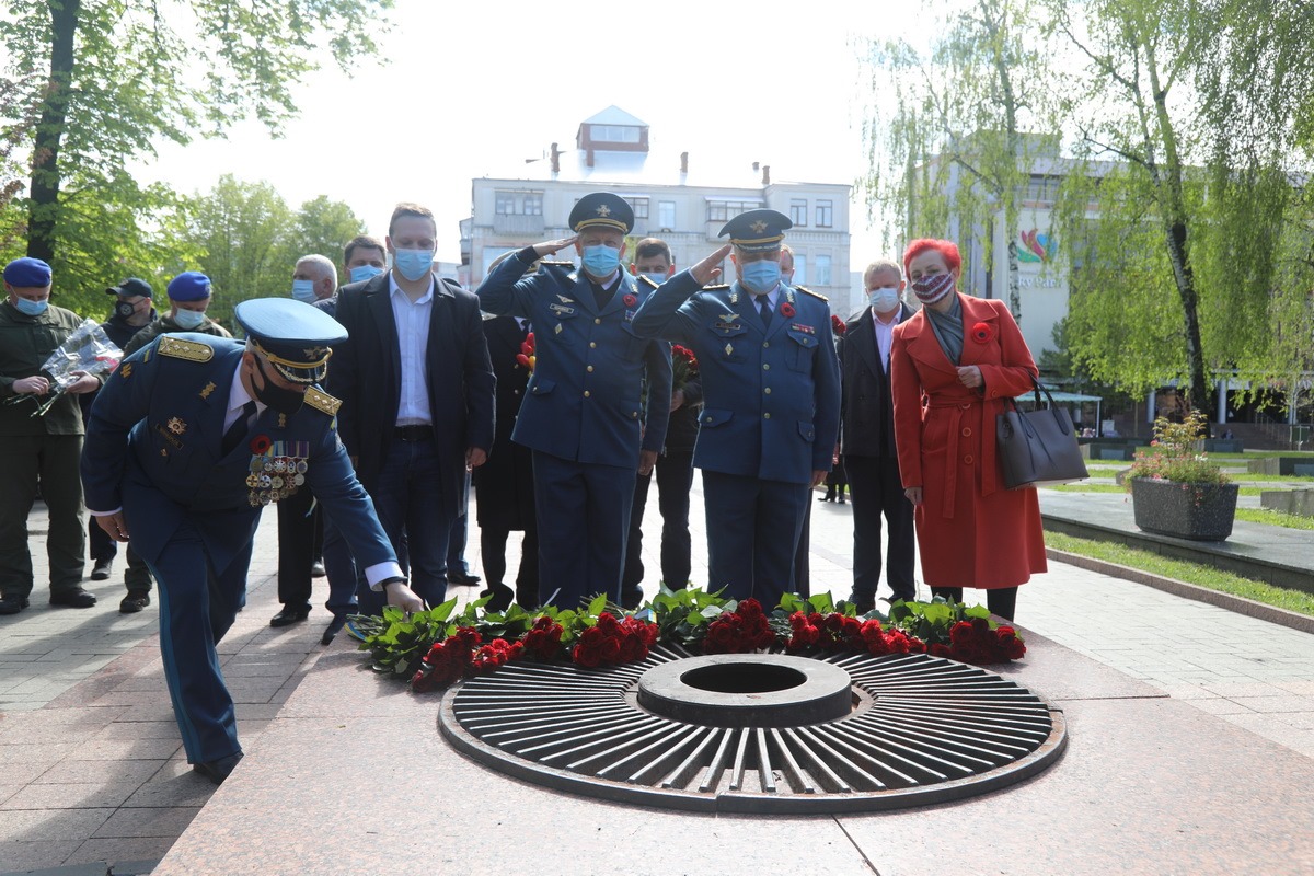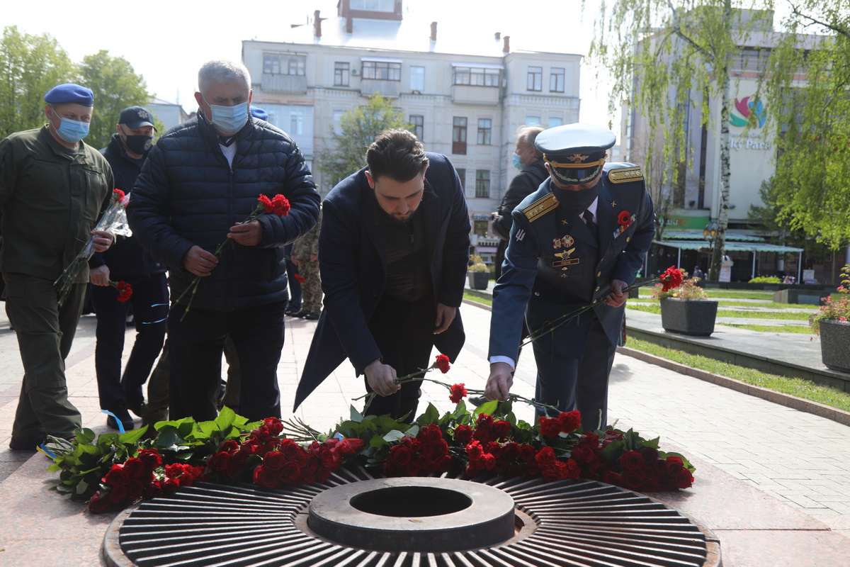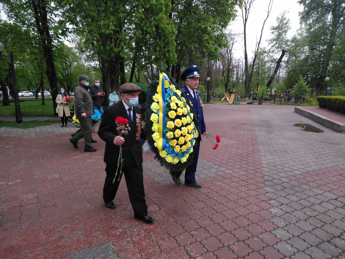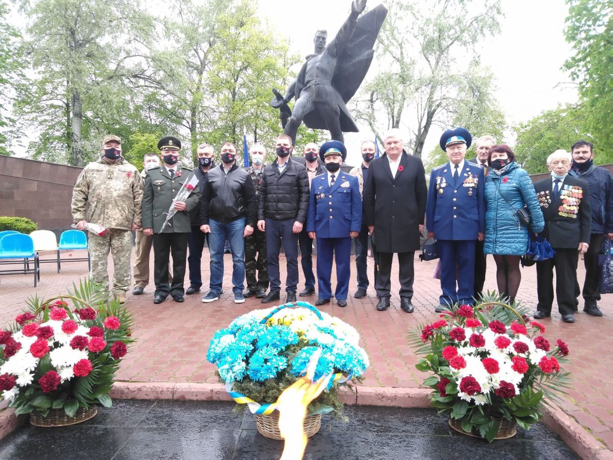 Захід розпочався урочистою ходою від Європейської площі міста до Меморіалу Слави. До Монумента та Вічного вогню прийшли керівники міської влади, учасники бойових дій, ветерани війни, громадськість, школярі, військовослужбовці бригади транспортної авіації, ОКПП «Київ», Національної гвардії. Вони поклали квіти та хвилиною мовчання вшанували пам’ять полеглих у роки Другої світової війни.