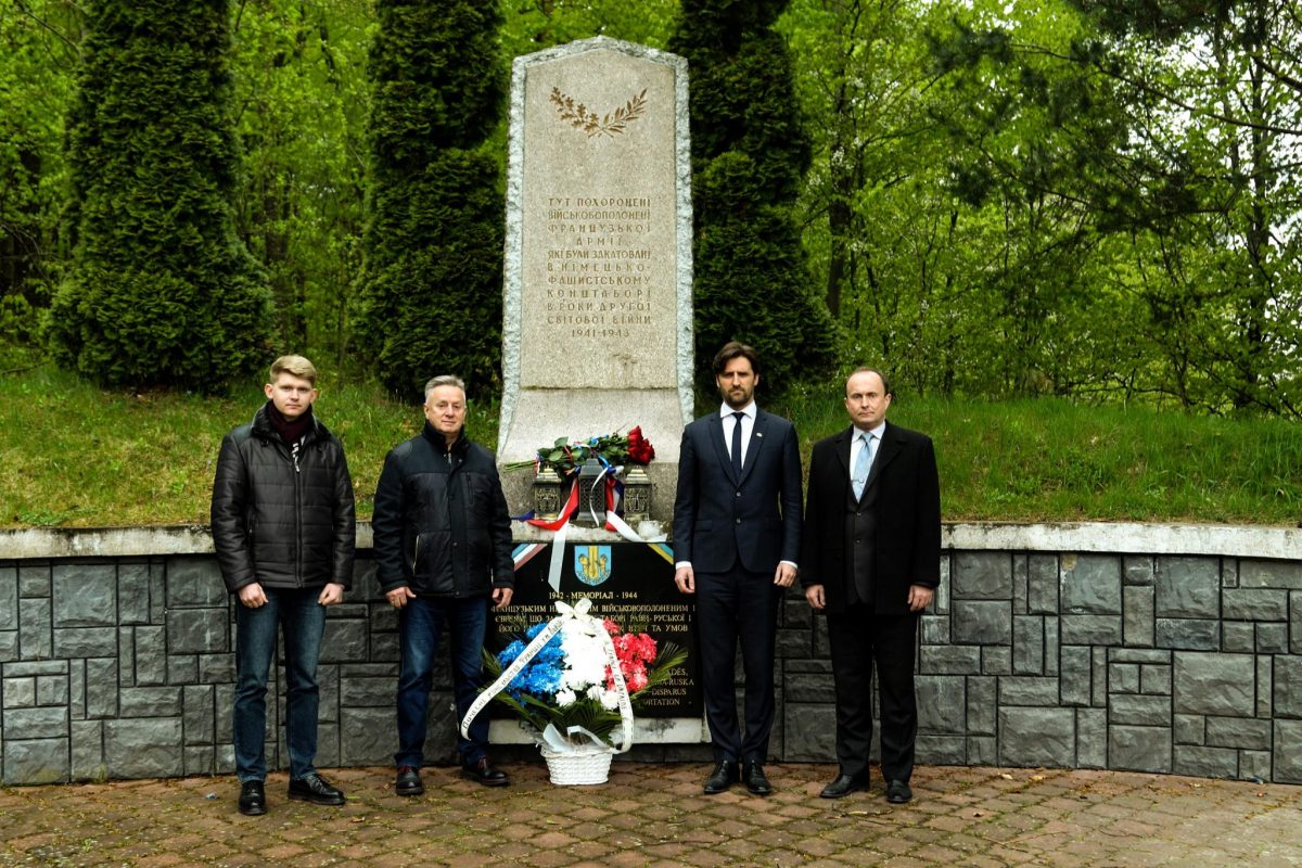 Почесний консул Франції у Львові Данило Ярема, директор «Альянс Франсез» міста Львова Ніколя Фасіно та президент «Альянс Франсез» міста Львова Василь Кметь поклали квіти до меморіалу в Раві-Руській і вшанували пам’ять закатованих військовополонених у концентраційному таборі «Шталаг-325».