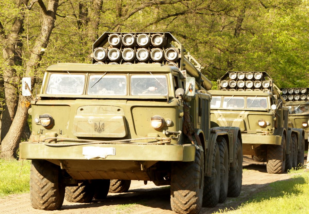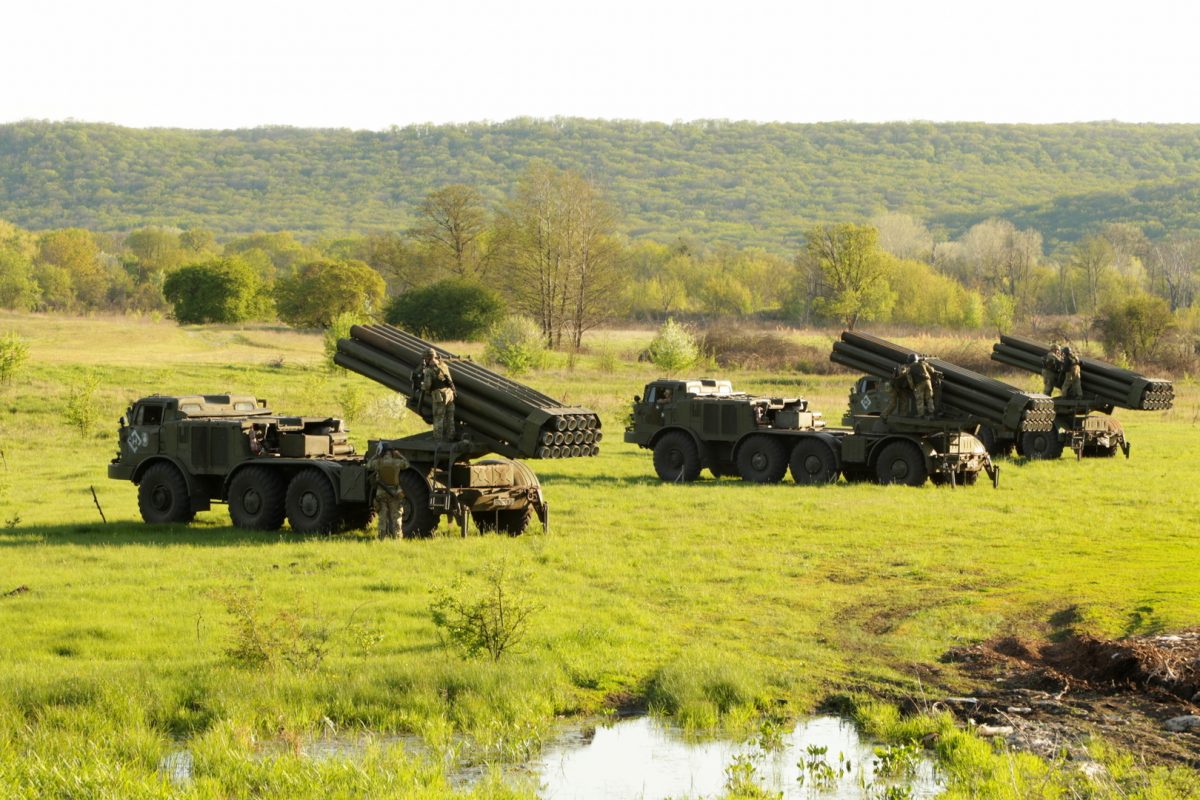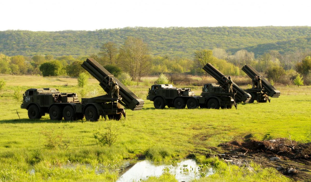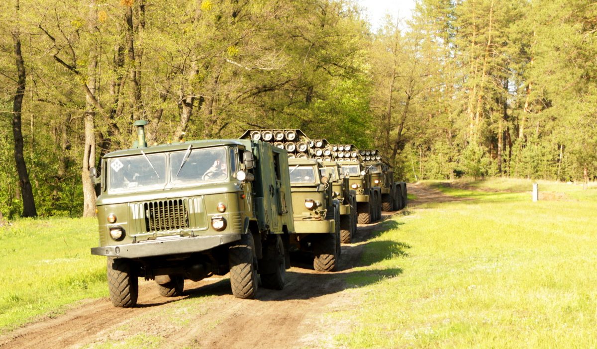 На навчаннях військові використовували реактивну систему залпового вогню БМ-27 «Ураган».