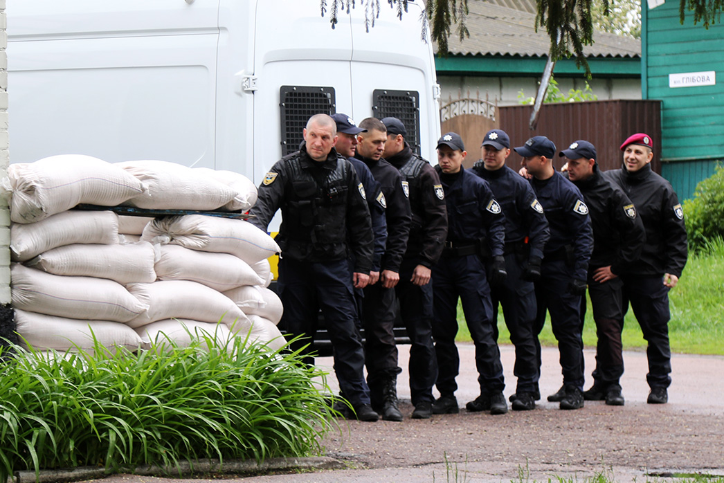 Першою локацією, яку відвідав командувач ТРО в Седневі, була будівля селищної ради. Тут, згідно легенди навчань, агресивно налаштовані умовно цивільні особи вирішили повторити ситуацію Слов’янська-Краматорська весни 2014 року і захопити адміністративну споруду. Та нападників спіткала невдача: особовий склад підрозділу територіальної оборони надійно утримував під прицілом периметр довкола сільської ради, поки поліцейські чітко за планом відпрацювали дії з припинення масових заворушень. Злагодженими діями вони відтіснили агресивних молодиків від адміністративної споруди, заарештували найбільш активних заколотників і розсіяли натовп за допомогою штатних засобів протидії.