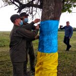 Окрім цього, бійці Національної гвардії України обгорнули обгорілі дерева, які стали свідками тієї трагічної події – символічними прапорами України з під написами присутніх на мітингу.