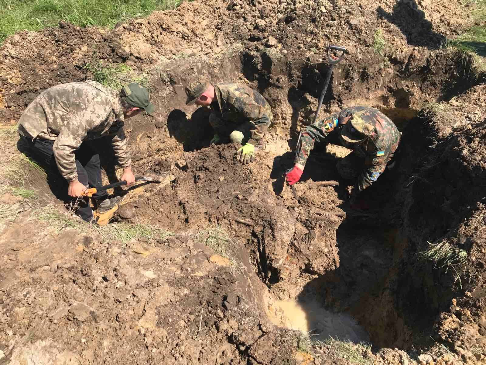 Як свідчить пошуковець, локація виявилась доволі складною, адже в яму почали просочуватися ґрунтові води. У зв’язку з цим хлопцям довелося робити дренажі та періодично вичерпувати воду відрами. Під час розширення ями виявилось, що в ній лежить не один солдат, а набагато більше. Оскільки не було фізичної можливості зробити повноцінну зачистку і пошуковці не були впевнені на 100%, що їм вдасться правильно розділити рештки солдатів, було ухвалено рішення зробити умовне розділення. Після завершення робіт на локації на банери було викладено рештки 4-х солдатів РСЧА, які загинули у липні-серпні 1941 року. При загиблих не було взуття, підсумків, ременів та інших штатних речей. Лише один шолом, скляна фляга та окуляри.
