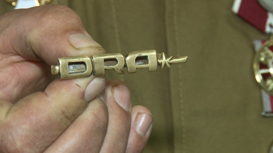 — Це невеликий експонат, як кажуть, дембельська шпилька, зроблена своїми руками. ДРА — це Демократична Республіка Афганістан. Вона висіла у мене на стіні, я вирішив її передати у музей, — говорить ветеран війни в Афганістані Анатолій Матвієнко.