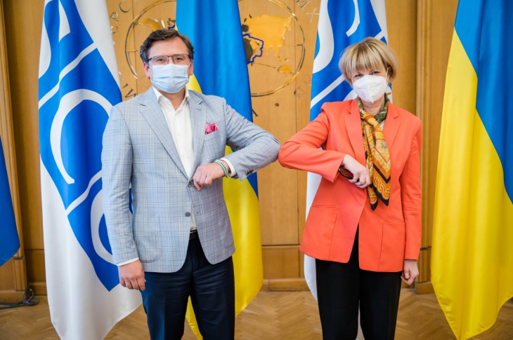 Напередодні, 26 травня, міністр закордонних справ України Дмитро Кулеба провів зустріч із Генеральною секретаркою ОБСЄ Хельгою Шмід під час її візиту в Україну.