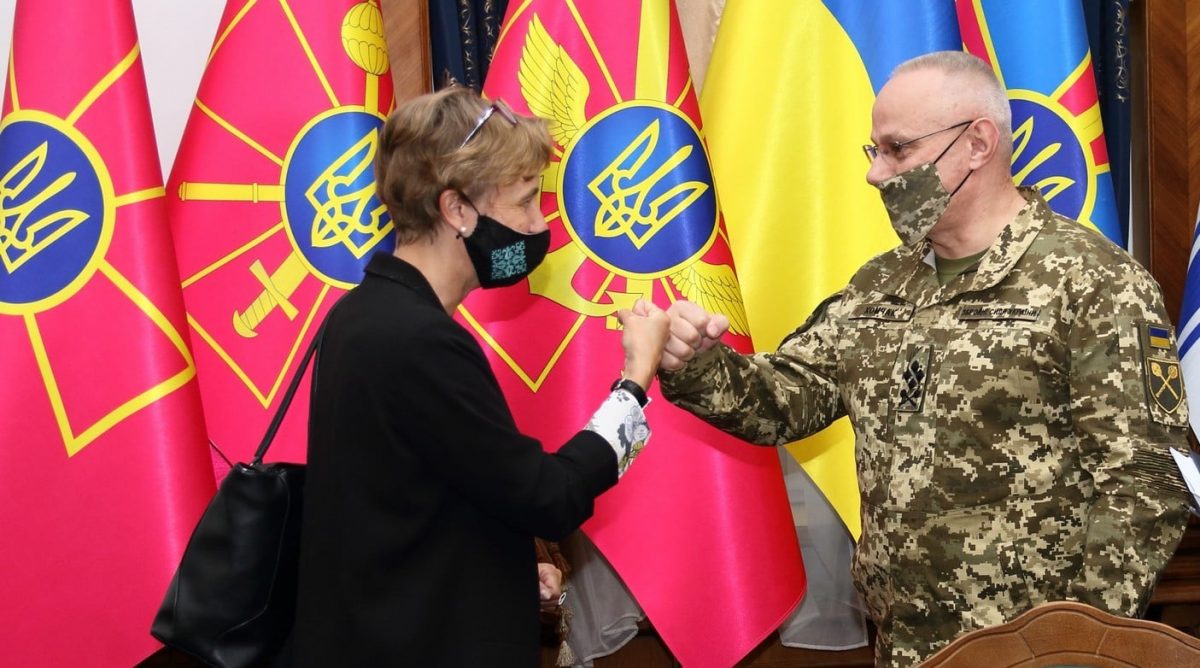 Сьогодні Головнокомандувач Збройних Сил України генерал-полковник Руслан Хомчак зустрівся з Надзвичайним та Повноважним Послом Федеративної Республіки Німеччини в Україні Анкою Фельгузен Посольство Німеччини в Києві / Deutsche Botschaft Kiew. / On May 27, 2021, the Commander-in-Chief of the Armed Forces of Ukraine, Colonel General Ruslan Khomchak, met with the Ambassador Extraordinary and Plenipotentiary of the Federal Republic of Germany to Ukraine Anka Feldhusen.
