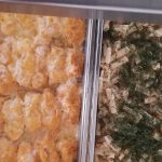 На друге — на вибір дві страви — тушкована капуста або гречка з кручениками зі свинини та два салати на вибір. До складу одного з них — «Райдуга» — входить морква по-корейськи, ковбаса, огірок, приправляється все це олією, а на довершення ще й зелень. Інгредієнти «салату з сиром Фета» — капуста «пекінка», помідори, огірки, оливки, перець болгарський та сир Фета, і теж заправлений олією. На третє — узвар із сухофруктів і яблука.