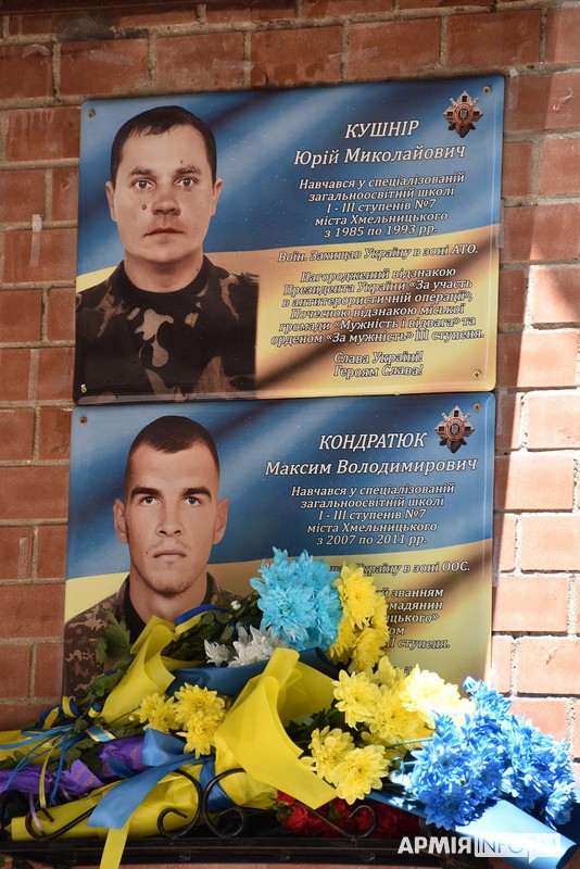 На території спеціалізованої загальноосвітньої школи №7 міста Хмельницького відкрили пам’ятні дошки на честь її випускників, які загинули в російсько-українській війні.