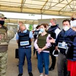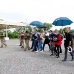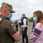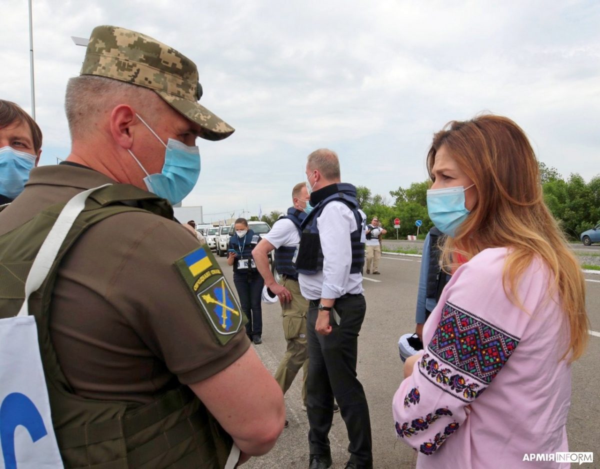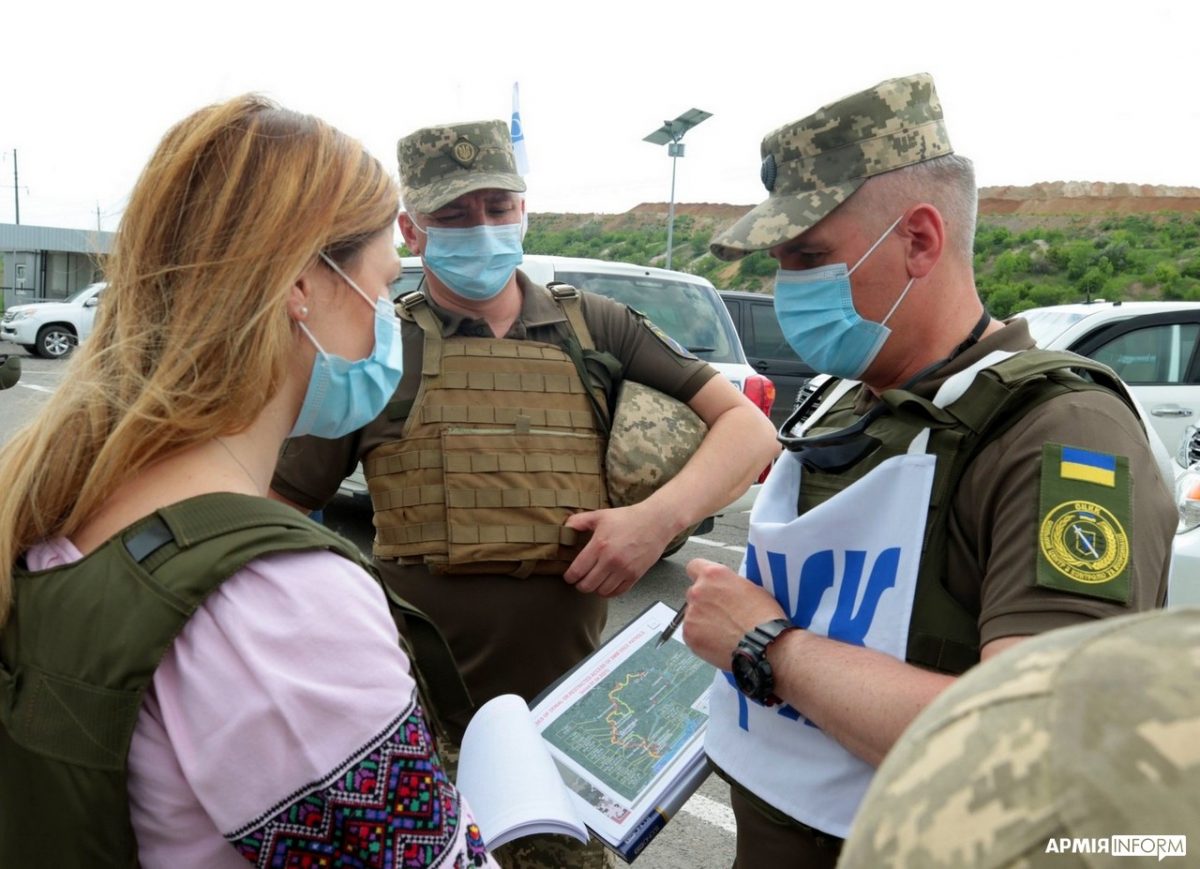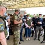 Почесних гостей зустріли члени місії ОБСЄ, які виконують обов’язки в Донецькій області, тимчасовий виконувач обов’язків командувача Об’єднаних сил генерал-майор Віктор Ганущак та представники Донецької облдержадміністрації.