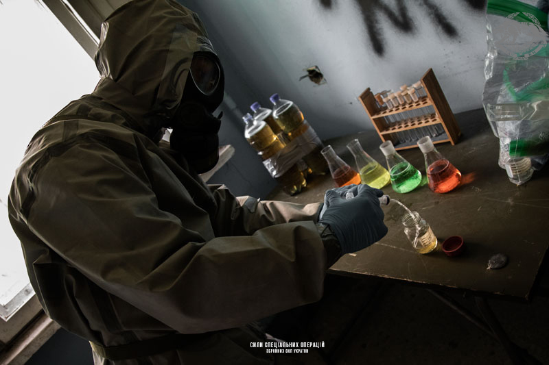 Водночас із цим завданням перед воїнами ССО стояло ще одне − виявити та ідентифікувати підпільну лабораторію з виготовлення саморобної зброї масового ураження. За легендою тренування, діям фахівців ХБРЯ–захисту передувала робота бойових груп. Вони вибили з квадрату умовних терористів і під час розвідки виявили підпільну лабораторію. Після на місце викликали «хіміків» (неформальна назва бійців підрозділів CBRN defense). Саме ці спеціалісти здійснили ідентифікацію підпільної лабораторії.