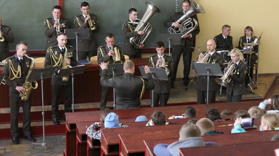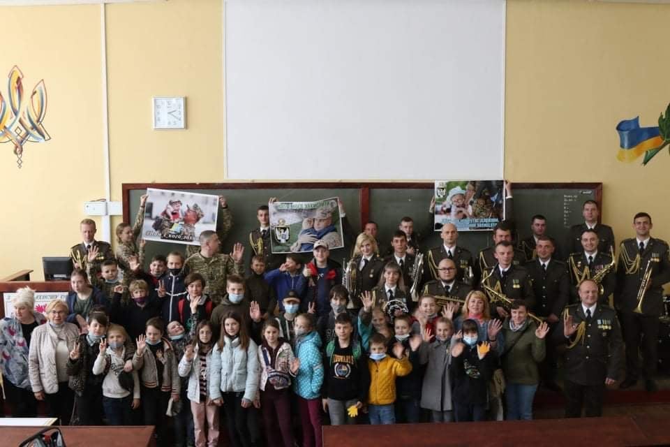 Потім гості відвідали їдальню інституту, де поласували картоплею фрі та іншими смаколиками. А після частування на малечу очікував концерт-сюрприз від військового оркестру інституту. Кожен із дітей залишив відбиток долоньки на згадку про себе, а також отримав подарунок від організаторів заходу.