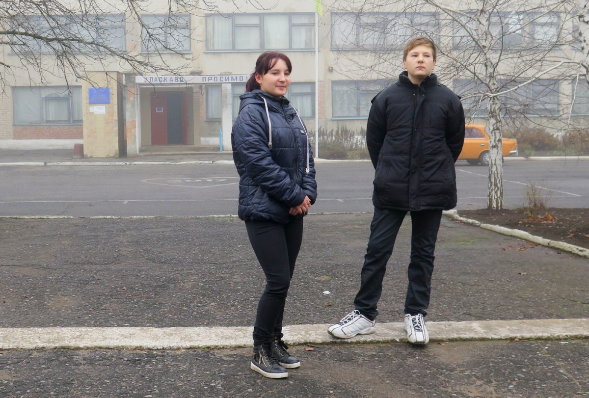 Даша, учениця 10-го класу, ще вісім школярів і вчителька української мови Тетяна Вікторівна живуть по той бік лінії розмежування. До школи у Гранітному, з непідконтрольної Києву Старомар’ївки, вони щодня долають чотири кілометри пішки – курсують між двома світами. «Є діти, які регулярно приходять до школи, а є ті, хто отримує завдання Інтернетом і так навчається», – уточнює Даша.