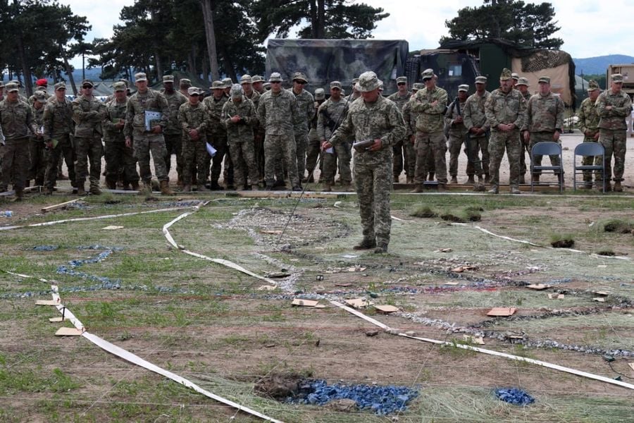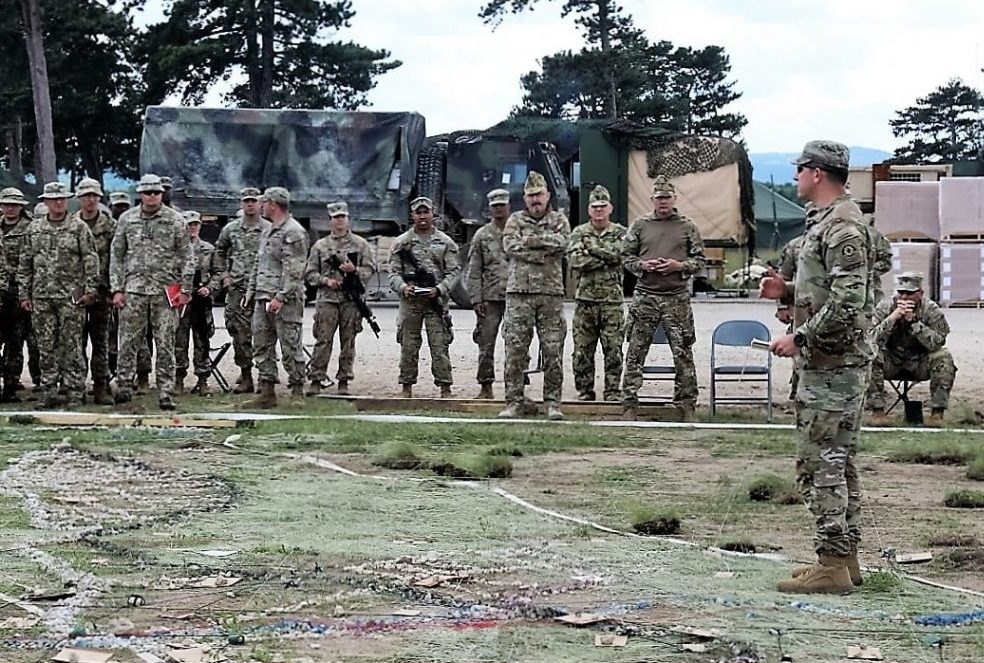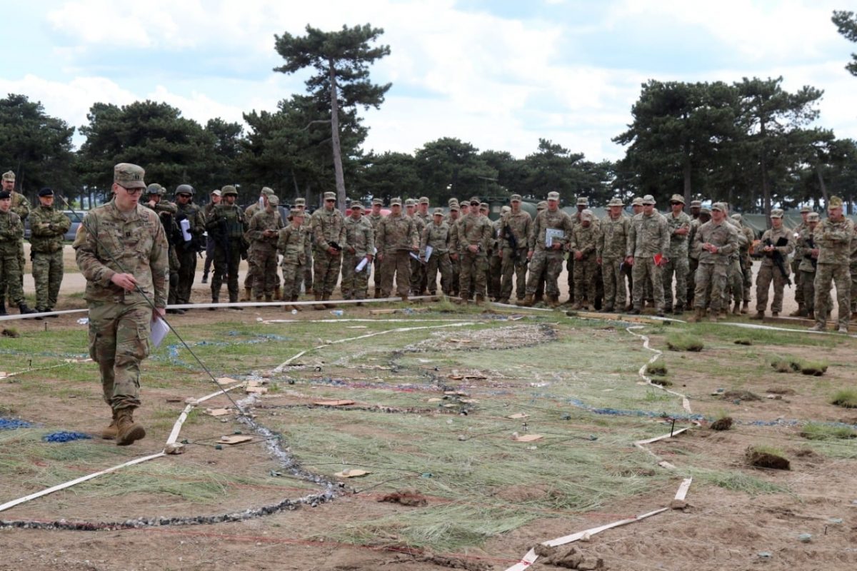 На макеті місцевості командири всіх ланок багатонаціонального угруповання розглянули дії своїх підрозділів, сил та засобів, обговорили питання всебічного забезпечення, а також практично відпрацювали питання дій під час зіткнення з ймовірним противником.