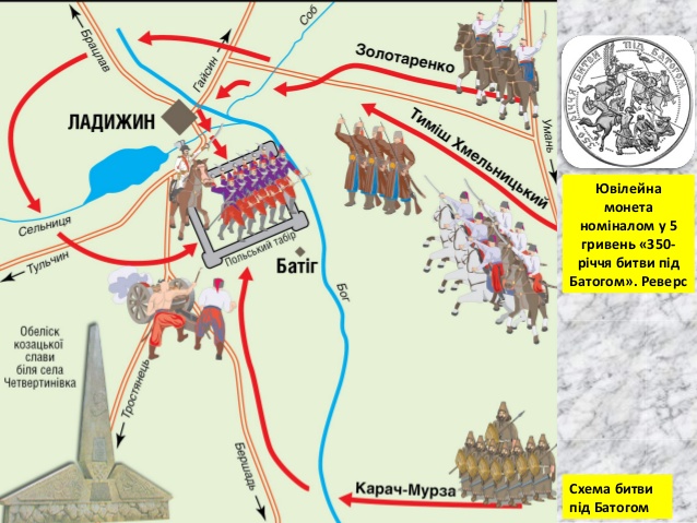 Наступного року, після катастрофічної для українців поразки під Берестечком і підписання тяжкого миру під Білою Церквою 1651 року, за умовами якого чи не вся Україна поверталася під ярмо польської шляхти і магнатів, відбулась переможна Батозька битва. Богдан Хмельницький вкотре довів свій визначний талант полководця, а козаки — вміння перемагати.