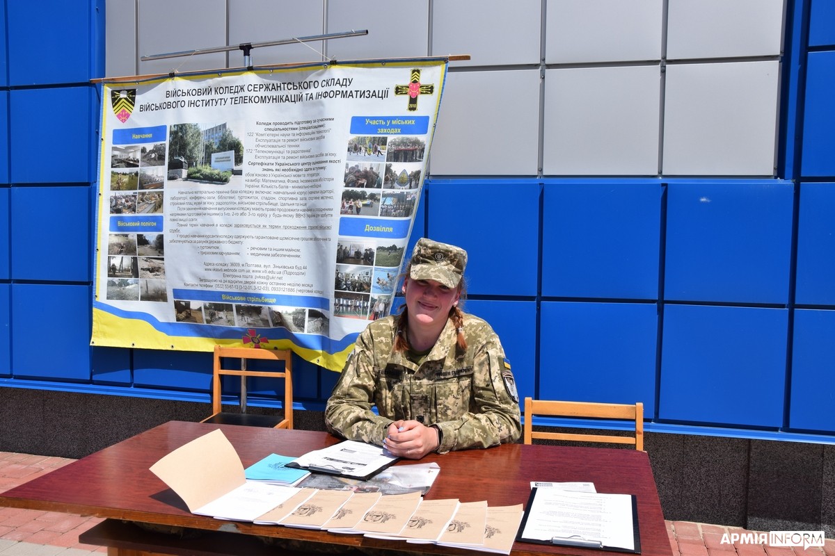 Окремий інтерес у старшокласників викликав демонстраційний майданчик, де курсанти Військового коледжу сержантського складу ВІТІ імені Героїв Крут ознайомили молодь щодо умов вступу і навчання у закладі.