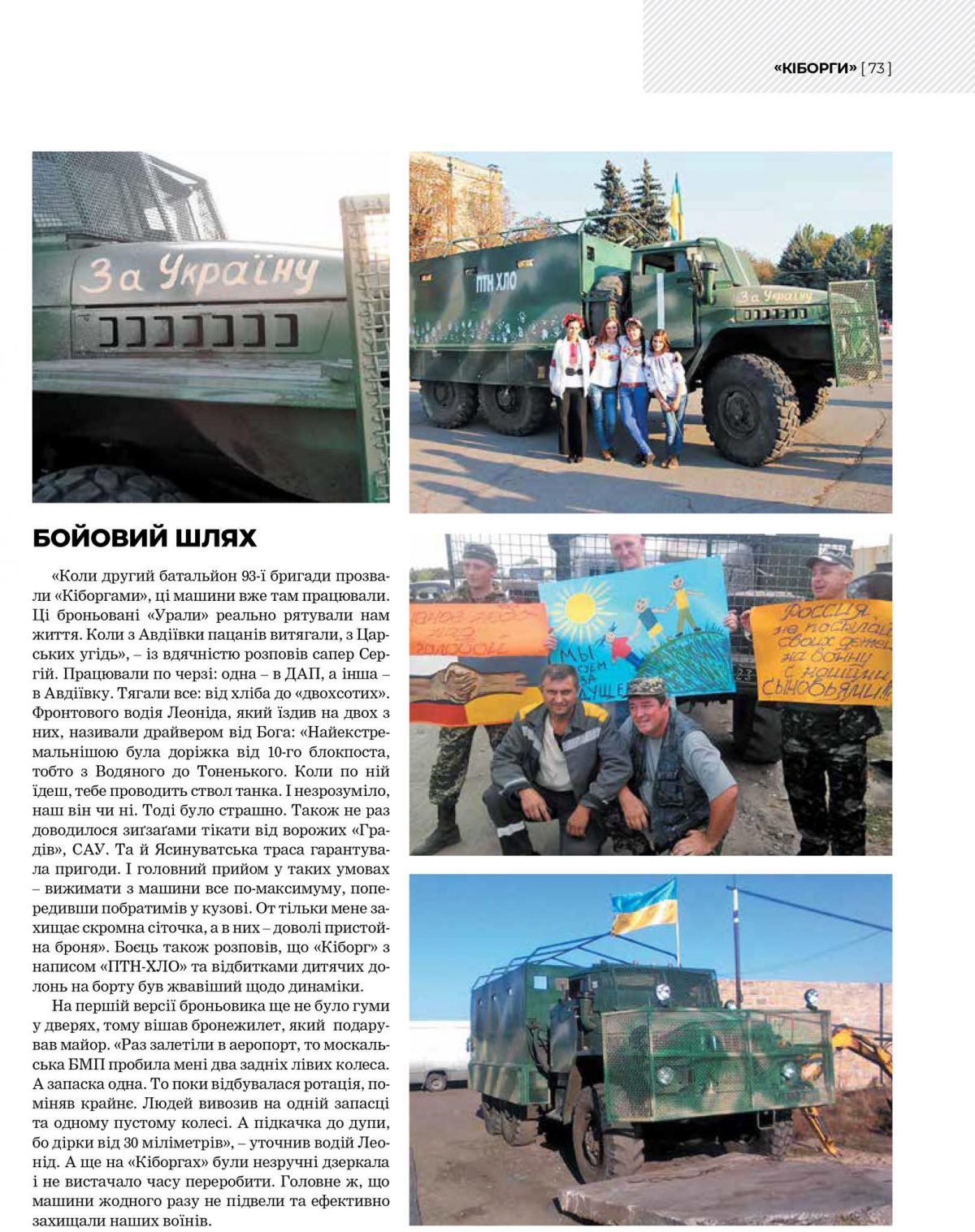 Однозначно: книга заслуговує на суспільну увагу та читацький інтерес. Ілюстроване військово-історичне видання увібрало півсотні розділів про більш ніж 70 унікальних машин від волонтерів та небайдужихукраїнців. З ними автор провів понад 120 інтерв’ю, усе — на реальних свідченнях. Головне, що технічні подробиці про залізних монстрів поєднані з долями людей, які створювали ці проєкти, фінансували їхіз останніх заощаджень, а також воювали на них.
