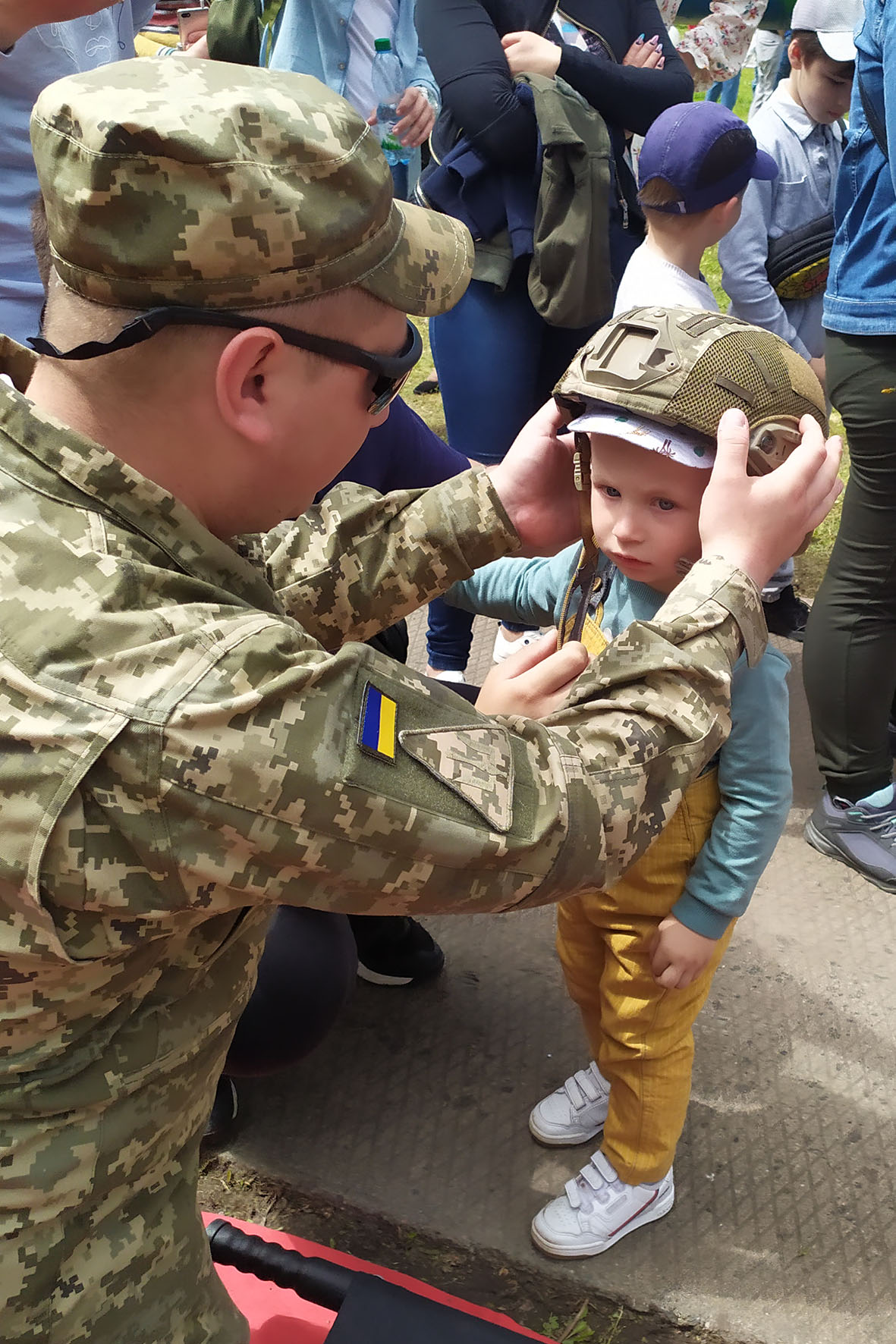 Діти та підлітки щасливо «керували» бойовими машинами, фотографувались біля літаків та вертольотів, «відпрацьовували» навички роботи в команді. А до польової кухні вишикувалася величезна черга. Охочих поласувати солдатською кашею одразу заспокоїли: «вистачить усім».