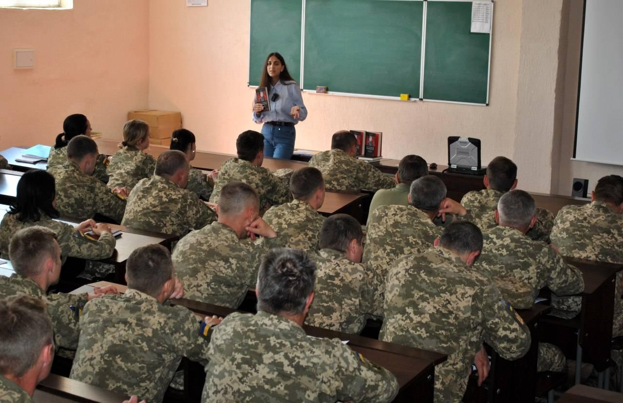 До навчального центру в смт Гуйва Житомирського району Сухопутних військ ЗС України завітала авторка книги «Останній командир УПА. Життя та боротьба Василя Кука» Аліна Понипаляк.