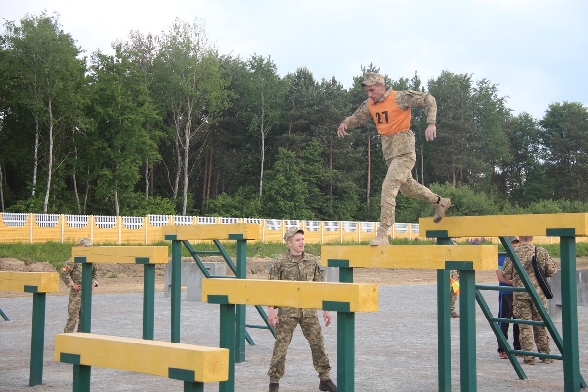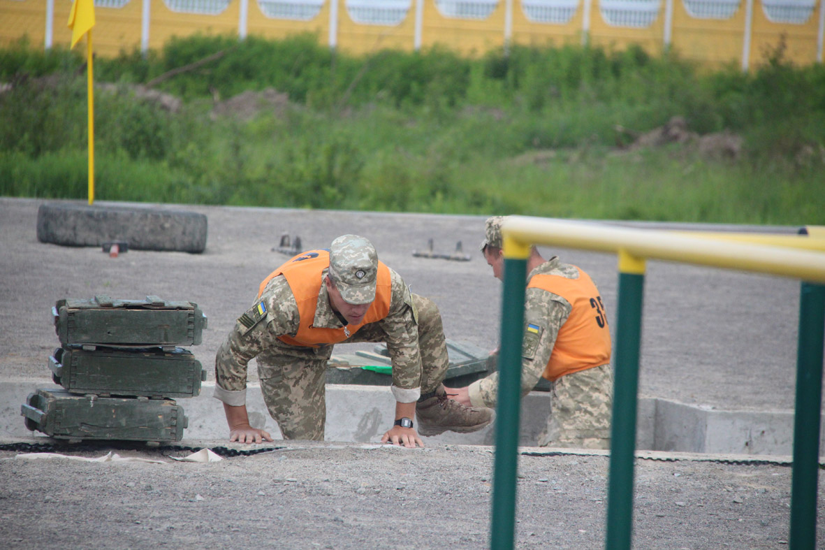 – Четверта вправа – це спеціальна смуга перешкод. Вона відрізняється від Єдиної смуги перешкод додатковими елементами: метанням гранати, ударами кувалдою по колесу, перенесенням траків вагою 8-10 кілограмів, віджиманням, перенесенням через рів ящиків з боєприпасами вагою десь 20 кілограмів. За емоційністю ці вправи переважають ті, що були раніше, – продовжив розповідь полковник Сергій Романчук.