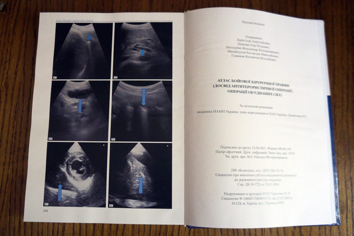 У Харкові накладом у 500 екземплярів вийшов у світ «Атлас бойової хірургічної травми (досвід антитерористичної операції/операції Об’єднаних сил)». На 385 сторінках розміщено 1053 ілюстрації, а в 11 розділах викладено неоціненну інформацію, що узагальнює бойовий досвід медичного забезпечення на полі бою.