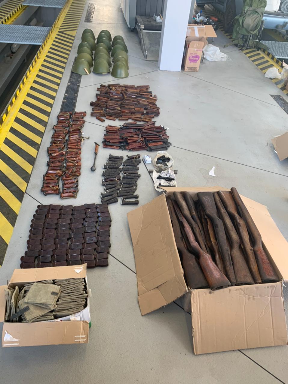 Зазначається, що під час огляду багажного відділення автомобіля «Фольксваген», яким підозрюваний виїжджав із України, прикордонники виявили понад 600 предметів військового призначення.