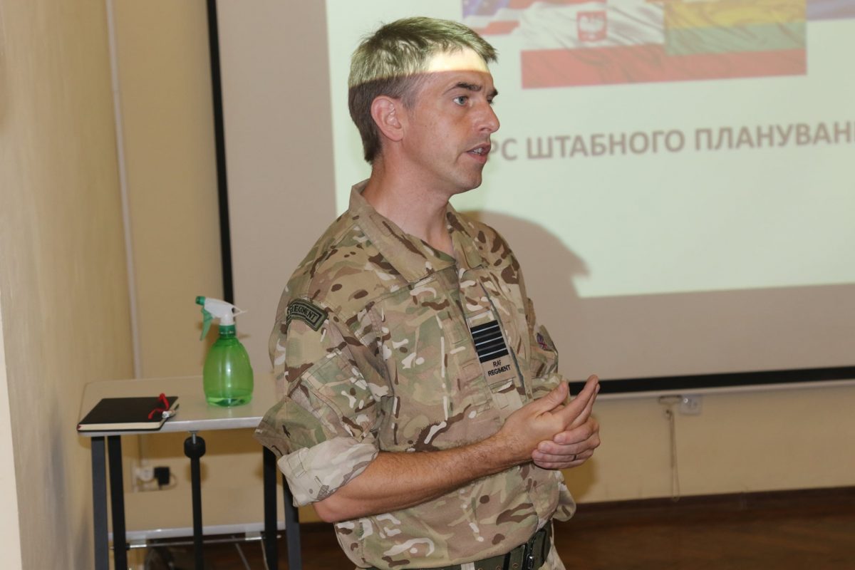 Під час першого дня навчань інструктори з Великої Британії та США ознайомили слухачів з основною J-структурою штабів НАТО. Також провели курс лекцій з організації роботи штабу під час планування операцій, розвідувального забезпечення у процесі штабного планування тощо.