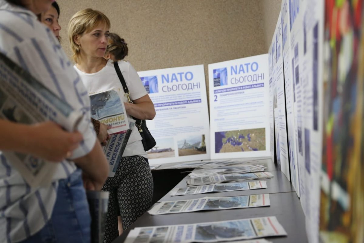 На виставці були представлені проєкти, які працюють під егідою Агенції НАТО, а також інформаційні матеріали про результати роботи в Україні програми «Наука заради миру і безпеки», про участь українських військових у спільних навчаннях під егідою Альянсу, його діяльність та завдання. У районі проведення ООС експозиція раніше вже була успішно презентована у Краматорську, Сєвєродонецьку, Авдіївці, Щасті та інших містах.