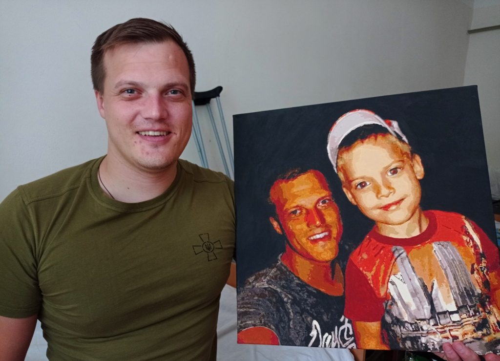Український морський піхотинець лейтенант Іван Зубренко втратив частину стопи, наступивши на ворожу міну на початку лютого, відтоді він проходить лікування у військовому шпиталі Дніпра. Аби не нудьгувати, Іван читає військову та художню літературу, спілкується з родиною та бойовими товаришами, а віднедавна захопився малюванням – над відтворенням на полотні свого з сином фотопортрета працював понад місяць. Хлопець каже, що хотів встигнути до дня народження сина – сьогодні молодшому Іванові Зубренку виповнюється вісім років.