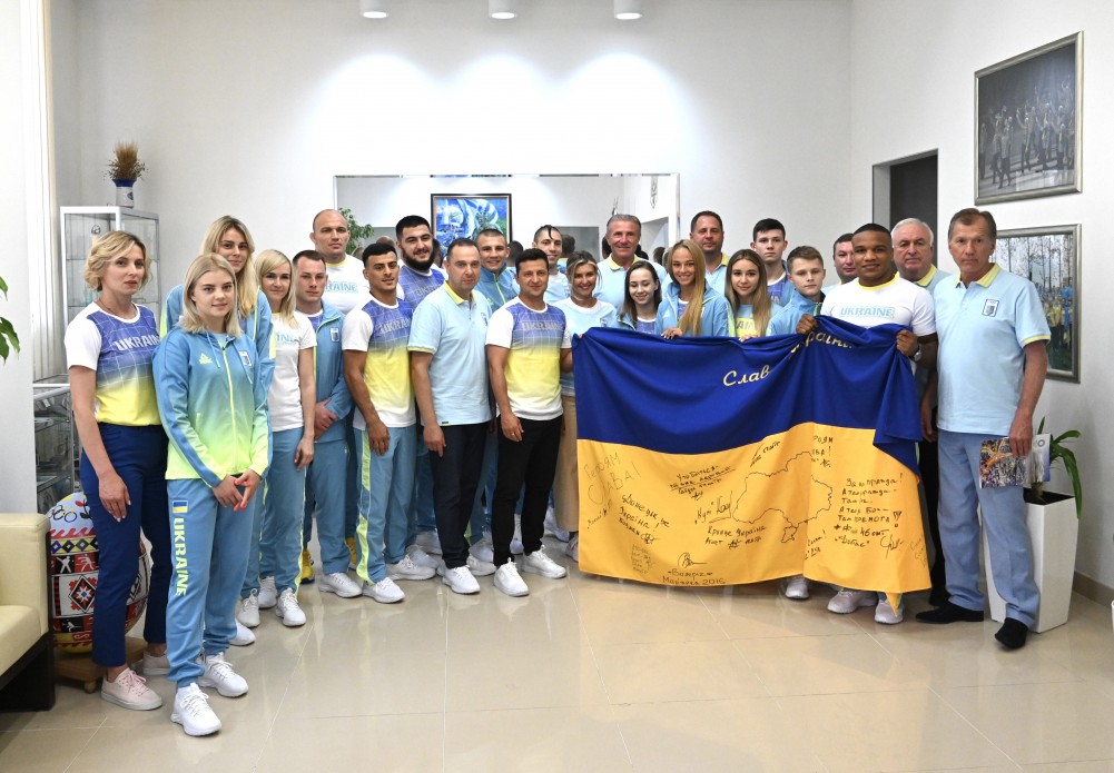Президент Володимир Зеленський під час зустрічі в Києві зі спортсменами, які представлятимуть Україну на 32-х літніх Олімпійських іграх, передав їм прапор України, підписаний військовими, що в різні роки захищали нашу країну на фронті. Про це йдеться в повідомленні пресслужби Офісу Президента.