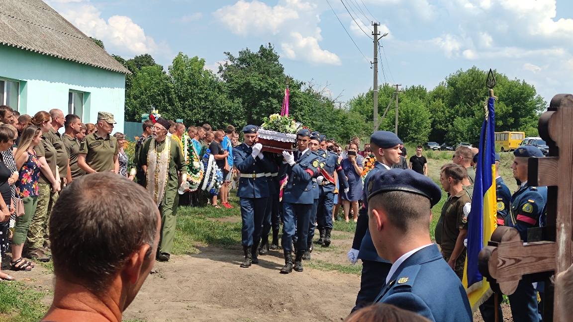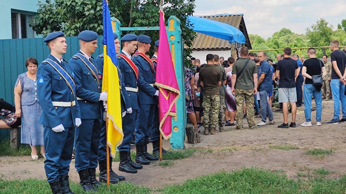 Після прощання на батьківському подвір’ї почесна варта курсантів Харківського національного університету Повітряних Сил імені Івана Кожедуба вирушила до центру села.