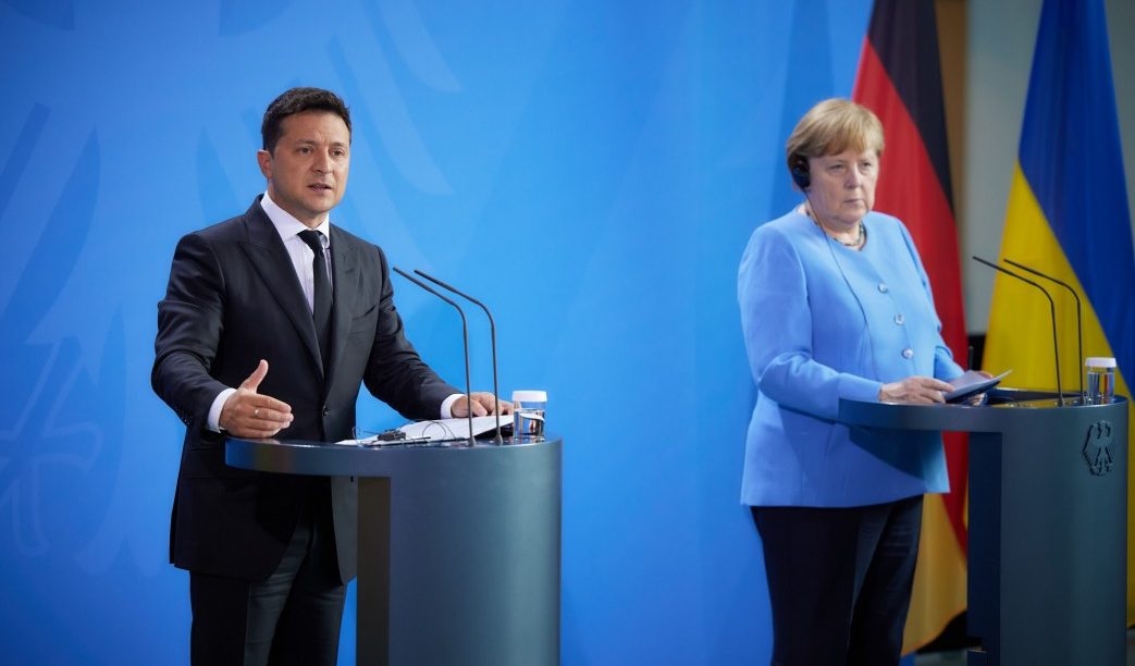 Президент України Володимир Зеленський у Берліні на зустрічі з канцлером Німеччини Ангелою Меркель закликав до посилення тиску на Росію для виконання нею своїх зобов’язань у питанні встановлення миру на сході України.