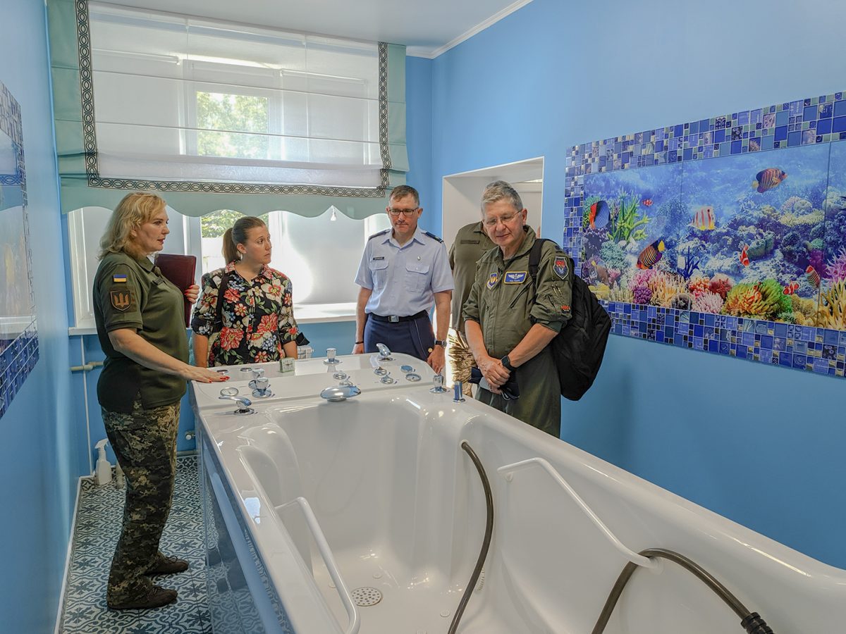 Під час оглядової екскурсії начальник клініки санаторного лікування підполковник медичної служби Ольга Романенко ознайомила представників Збройних сил США з матеріальною базою, умовами лікування та реабілітації військовослужбовців. Зокрема, з роботою кабінетів фізіотерапії, соляної кімнати та інше.