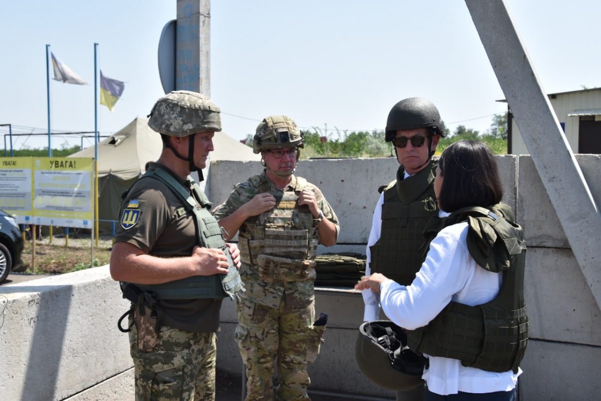 19 липня данські дипломати зустрілися з заступником Командувача об’єднаних сил генерал-майором Едуардом Москальовим. Вони відвідали контрольний пункт в’їзду-виїзду «Золоте», де ознайомилися з інфраструктурою та можливостями КПВВ. Також учасники зустрічі побували на командно-спостережному пункті підрозділу Збройних Сил України, що виконує завдання в складі Об’єднаних сил.