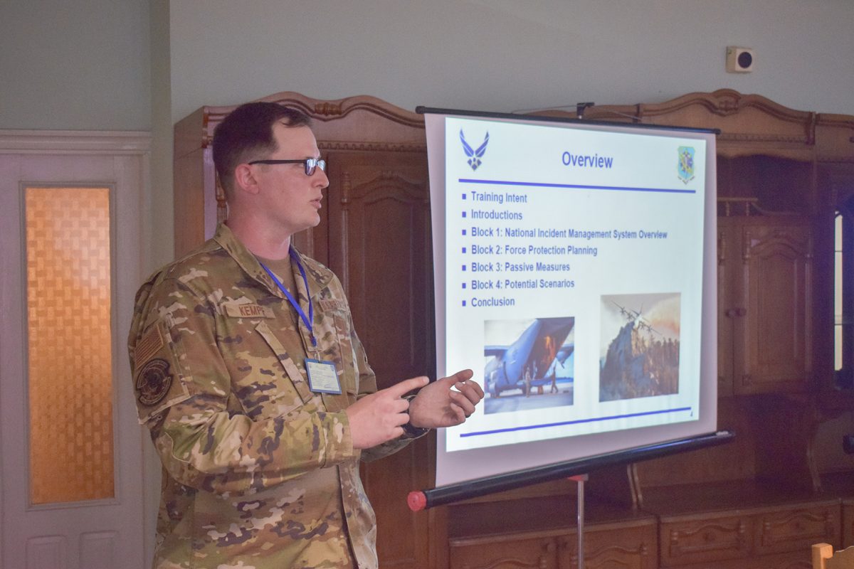 Інший курс провели на базі бригади транспортної авіації імені Дмитра Майбороди. Розглянули не менш важливе питання, яке стосувалося захисту сил. Зокрема, представник Штабу Об’єднаного командування ВПС розповів про основні принципи та складнощі захисту військ під час раптової атаки на аеродром, особливості безпеки зв’язку та захисту інформації, а також роль засобів ППО та ПРО у прикритті летовища. Також він змоделював декілька тактичних ситуацій з умовною атакою противника на авіаційну базу, аби учасники навчань запропонували свій алгоритм протидії. Військовослужбовці ВПС США Даніель Кемпф та Вейн Фурман розповіли про досвід взаємодії й залучення до спільних операцій підрозділів Військово-повітряних сил, Національної гвардії, поліції. Також розглянули приклади взаємодії українських авіаторів з іншими силовими структурами.