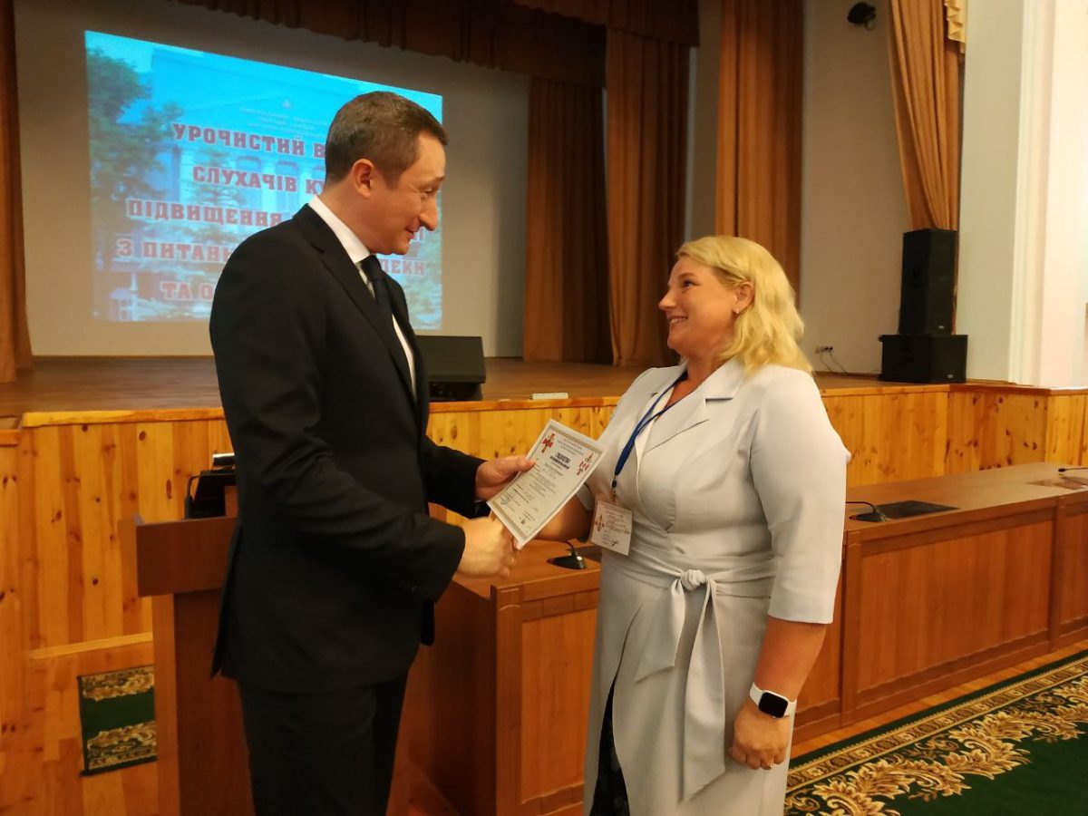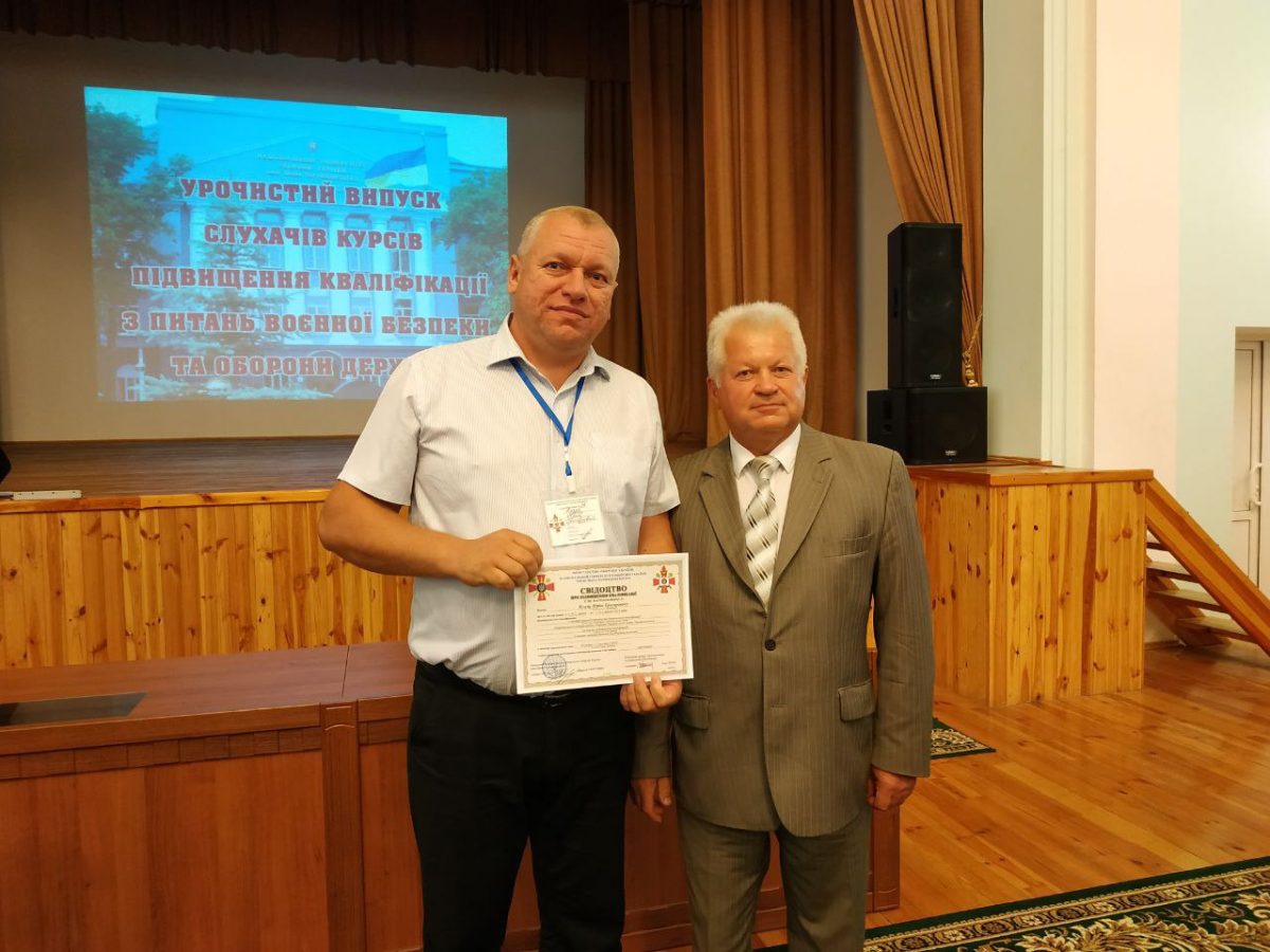 Сьогодні в актовій залі університету відбулися урочистості, присвячені завершенню курсу. На заході були присутні Міністр розвитку громад та територій України Олексій Чернишов, керівник Головного департаменту з питань Національної безпеки та оборони Офісу Президента України Олексій Покотило, які вручали сертифікати про проходження курсу, а також керівництво університету.