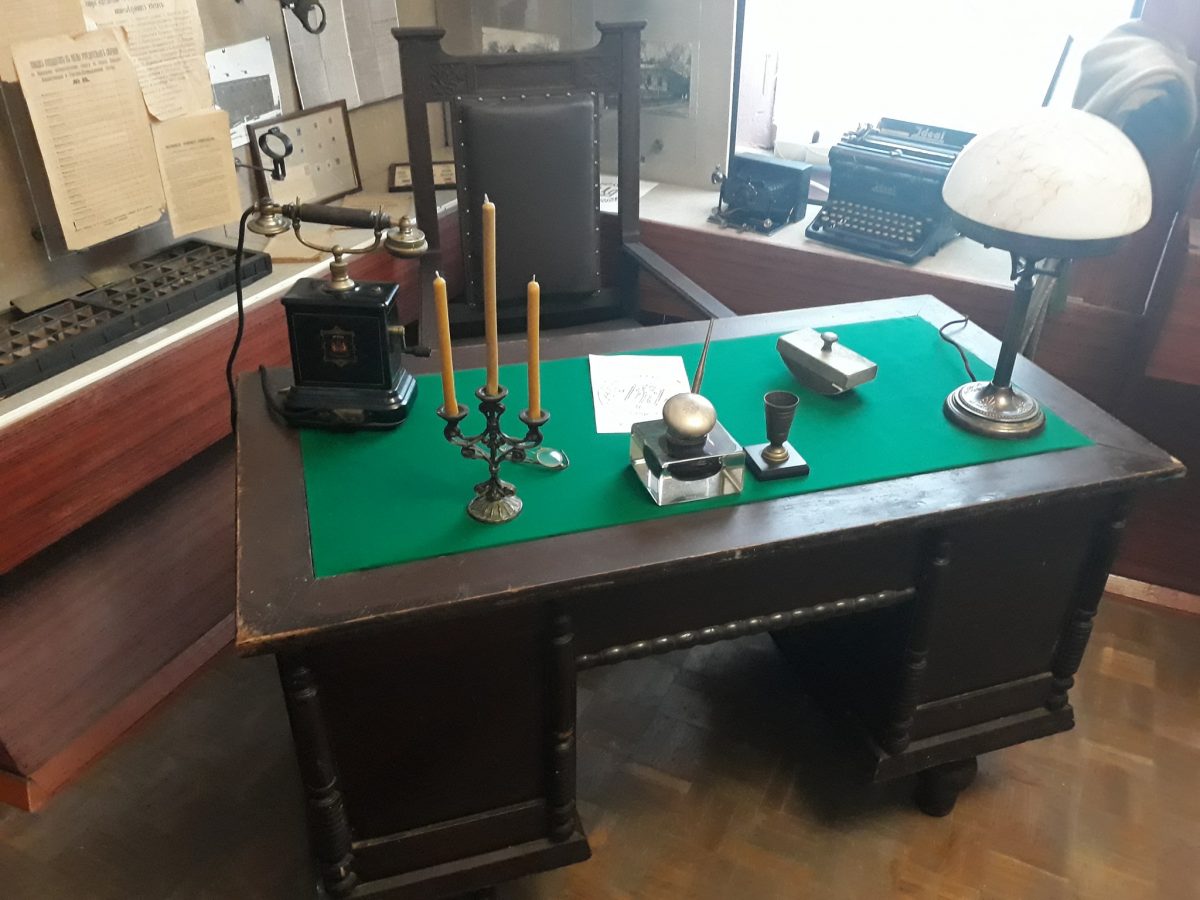 Ще один цікавий експонат цього періоду — монетниця періоду Перших визвольних змагань. Її у 90-х роках знайшов на березі Тетерева один із радомишлян, і тепер на час проведення виставок він люб’язно надає рідкісну річ музею. Власними експонатами є інші складові цієї локації — чорнильниця, перо та свічник. Не так давно до них приєдналися й подаровані чеськими українцями Світланою та Марцелом Гедбавними настільна лампа та телефон. Це — ті самі меценати з Чехії, які торік викупили для музею листівки повстанців УПА, про що свого часу розповідала АрміяІnform.