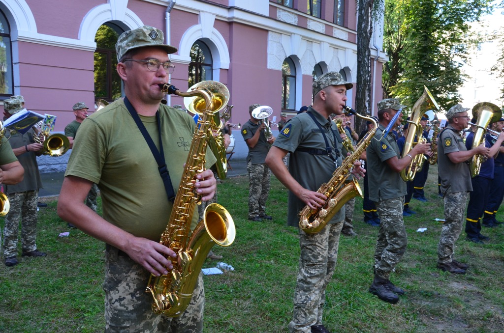 «Тут є зведений оркестр Збройних Сил України, який буде забезпечувати парад військ на Хрещатику. Окрім цього, відбудуться ще два паради — річковий у Києві та в Одесі. Оркестри, які залучені до їх проведення наразі тренуються на інших локаціях. ВМС представляють два оркестри — Центру військово-музичного мистецтва та окремої артилерійської бригади імені генерал-хорунжого Олексія Алмазова.