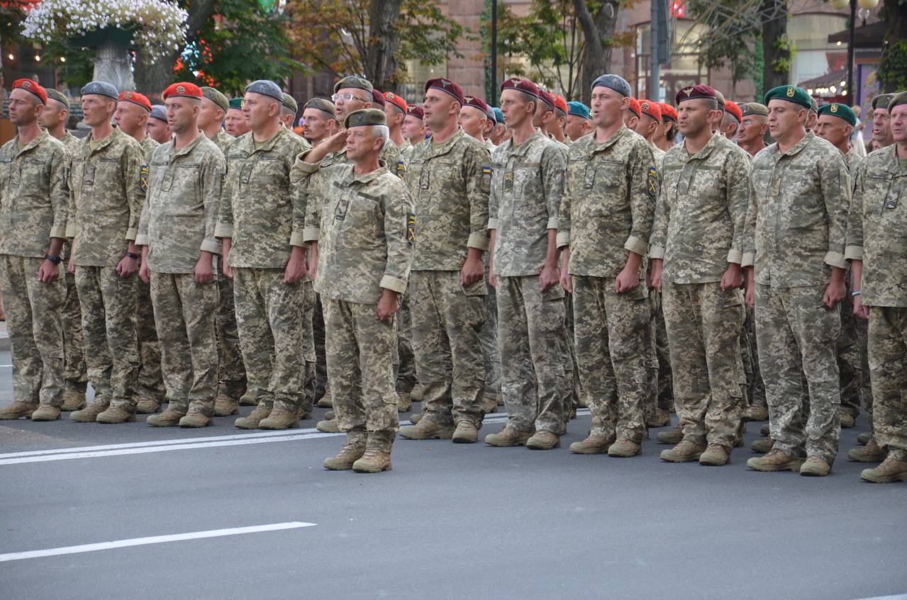 130 ветеранів пройшли Хрещатиком. Для участі у параді вони зібралися з різних міст країни: Львова, Харкова, Запоріжжя тощо. Урочистим маршем головною вулицею Києва сьогодні крокували ветерани – представники Сухопутних військ, Військово-Морських Сил, Десантно-штурмових військ, вітчизняних військових вишів, Національної гвардії України, Міністерства внутрішніх справ, які побували у найгарячіших точках АТО та ООС.