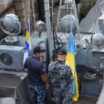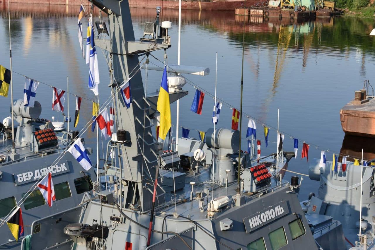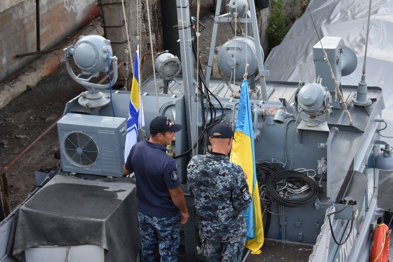 Сьогодні українські військові моряки в урочистій обстановці підняли Державний прапор України, прапор Військово-Морських Сил ЗС України та прапори розцвічування на малих броньованих артилерійських катерах «Бердянськ», «Нікополь» та «Костопіль», а також на десантному катері «Сватове».