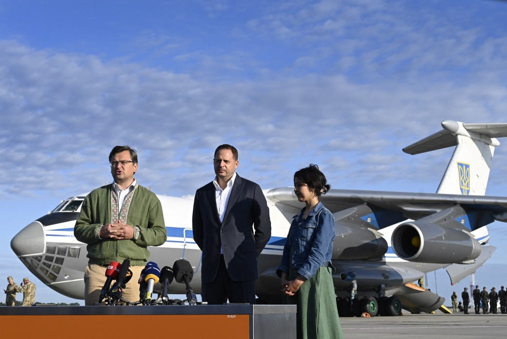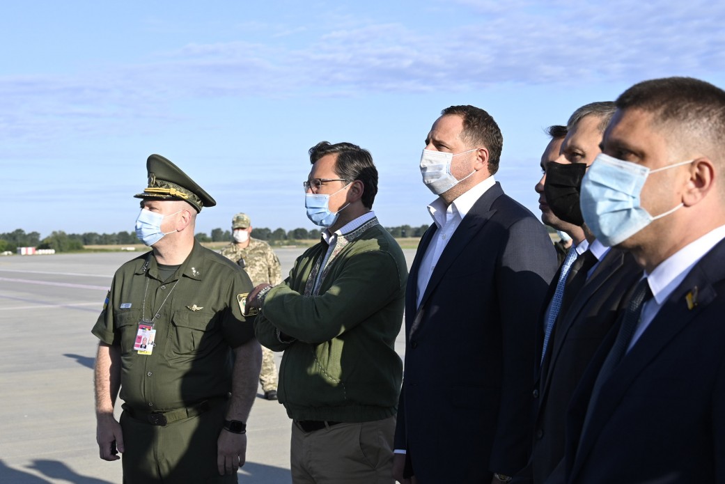 Літак зустрічали керівник Офісу Президента Андрій Єрмак, заступник керівника Офісу Глави держави Роман Машовець, міністр закордонних справ Дмитро Кулеба.