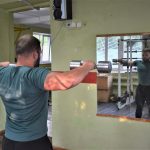 Пощастило побувати й на тренуванні Олександра Клена. Два невеличких спортивних зали вщент наповнені «залізом» – від десятків найрізноманітніших гантелей і гир до кількох жимових лавок з грифами та дисками, простих, але ефективних тренажерів. Обов’язковим атрибутом таких залів є дзеркала, які допомагають контролювати правильність виконання вправ.