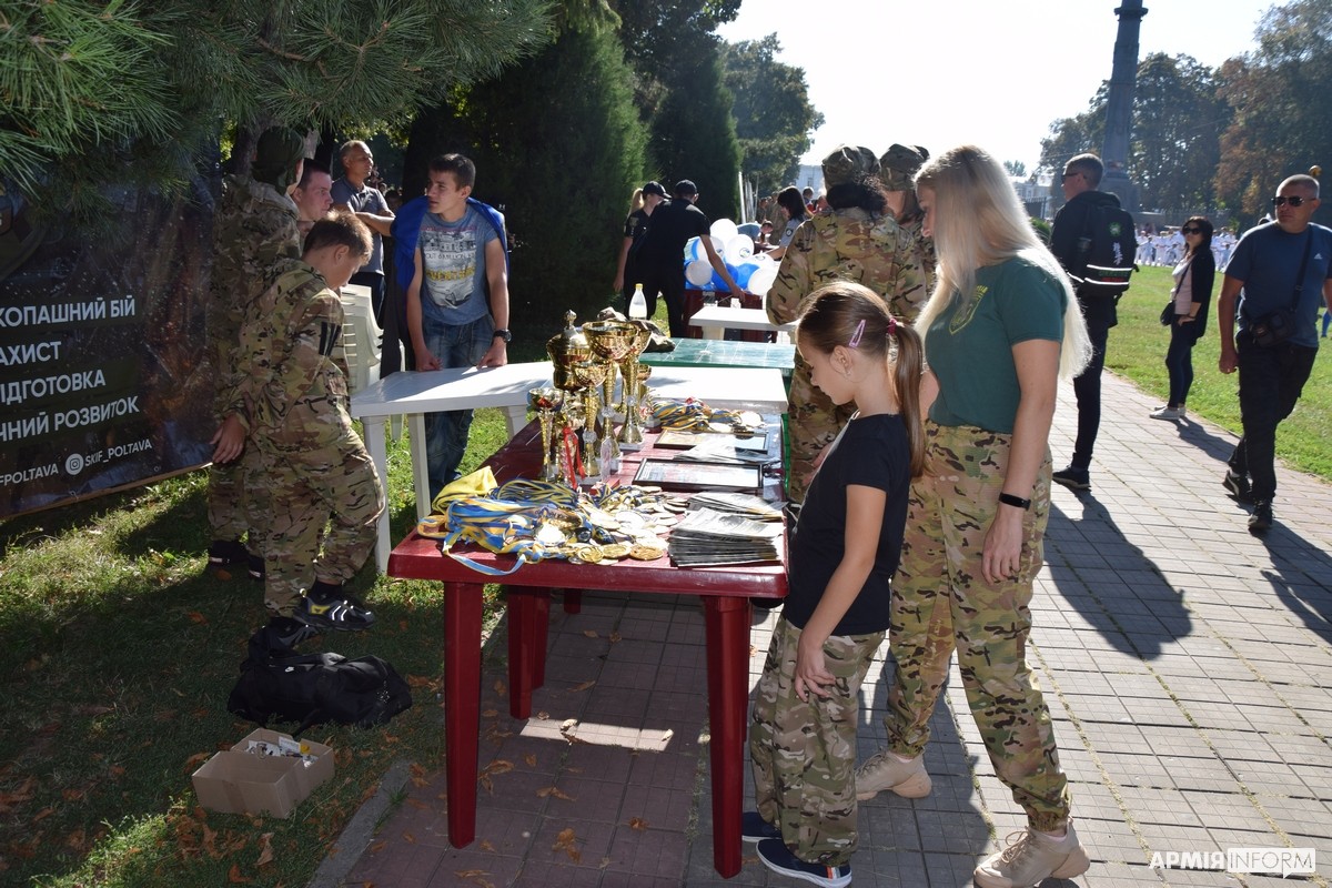 До програми спортивного свята увійшли показові тренування спортивних гуртків, військово-патріотичних клубів та ДЮСШ міста, виставки-презентації роботи військових кафедр полтавських вишів у сфері розвитку військово-прикладних видів спорту, майстер-класи з видів єдиноборств та проведення командного турніру з лазертагу.