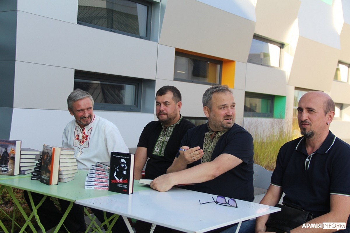 Відповідь на це привезли до Львова відомі українські сценаристи та автори одноіменного гостросюжетного пригодницького роману «Позивний «Бандерас» кияни Артемій Кірсанов і Сергій Дзюба