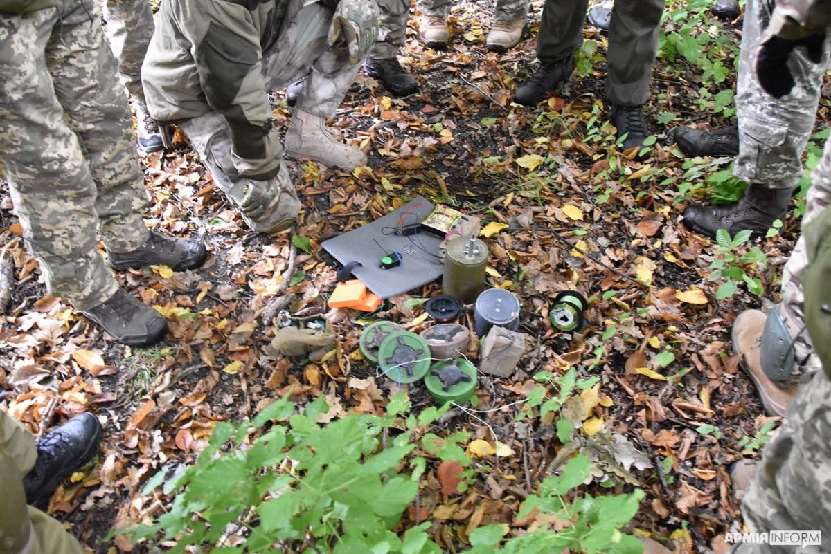 – Проросійські найманці та їхні куратори жодним чином не дотримуються міжнародних Женевських чи Оттавських конвенцій, встановлюють заборонені у світі протипіхотні вибухові пристрої у некерованому варіанті, – каже один з інструкторів. – Відповідно, ми відпрацьовуємо дії підрозділу на замінованій ділянці місцевості використовуючи при цьому навчальні протипіхотні міни ПМН-2, ПОМ-2, МОН-50 і вистрибуючі осколкові міни кругового ураження ОЗМ-72. Кожен член групи повинен знати і вміти ідентифікувати інженерний боєприпас, розуміти ступінь його небезпеки, позначити сигнальним маркером і обійти. Ми розділили учасників практичних занять на дві групи. Кожна встановлює міни на своїх визначених смугах лісової місцевості, потім групи міняються навчальними місцями і долають заміновані ділянки. Ми спостерігаємо за цим за допомогою дистанційного пульта, потім розбираємо, аналізуємо, працюємо над помилками.